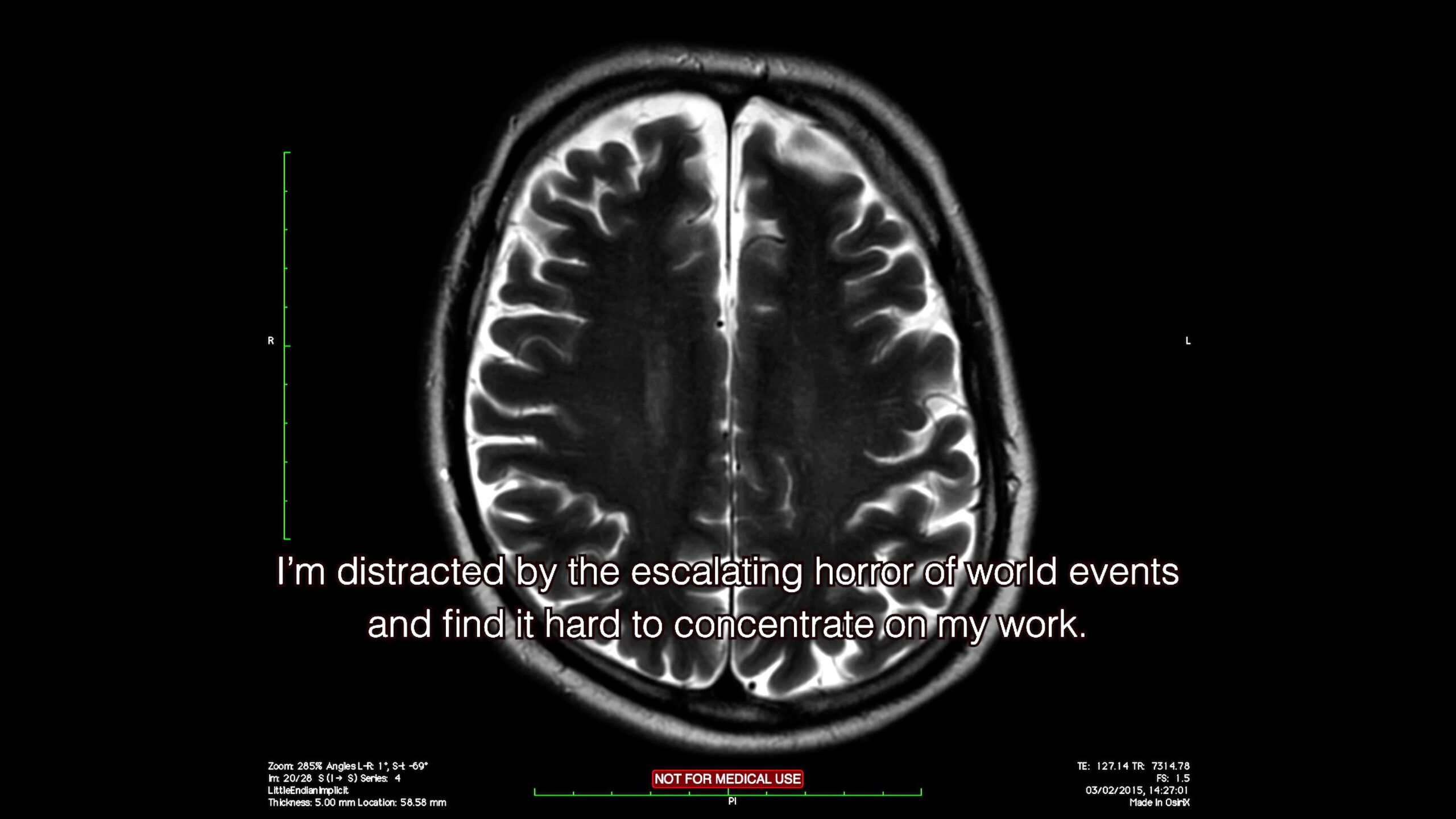 Ce înseamnă să devii cineva – mai ales, cineva cu un impact enorm asupra cinemaului experimental – când numele de la naștere este sinonim cu ideea de „obișnuit”, „banal”, „fără trăsături distinctive”? Folosind stilul său inconfundabil de umor sec pe marginea unor reflecții cât se poate de profunde, John Smith realizează un film despre identitate și memorie/memorabilitate în aceeași măsură în care își „scrie”, din felurite materiale de arhivă, o autobiografie filmică,punând-o în tensiune atât cu Being John Malkovich, cât și cu alte faimoase [auto]biografii ale cinemaului) Totodată, Smith contemplează asupra propriei opere – îndeosebi asupra fundamentalului The Girl Chewing Gum, din 1976 –, asupra culturii pop și politice (vorbind, la final, despre genocidul din Gaza), a transformărilor suferite de imaginea în mișcare de-a lungul vieții sale. (Flavia Dima)